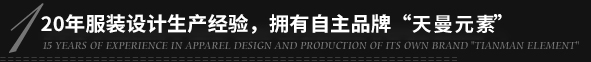 天曼擁有20年專業(yè)服裝生產(chǎn)經(jīng)驗(yàn),成功為國家電網(wǎng)、富士康、中石化中鐵十二局等企業(yè)定制服裝。 專業(yè)的技術(shù)團(tuán)隊(duì),提供服裝設(shè)計(jì)服務(wù) 擁有自助知識產(chǎn)權(quán)的服飾品牌"天曼元素"、"博士后"、"屹奧"。